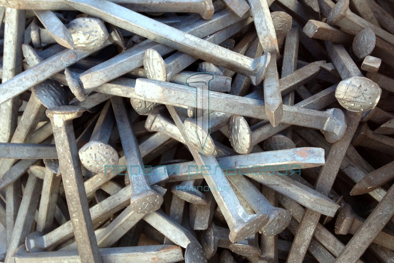 Костыли служат для крепления рельсов к деревянным шпалам, подрельсовым брусьям и стрелочным переходам. Стальные стержни надежно фиксируют рельс на шпале, предотвращая опрокидывание и боковое смещение.